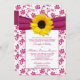Pretty medium berry pink and white floral damask yellow sunflower wedding invitation.The colours in this sunflower flower damask pattern wedding invitation are wine or berry pink, yellow and white. A pretty country or cottage chic design in a unique colour combination. Berry pink is a medium pink colour, lighter than a burgundy.