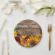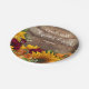 Sunflower, Pumpkin & Roses Wedding Party Plates. Rustic weddings rejoice! Our sunflower and roses customizable plates are a great way to showcase your day! Featuring a rustic wood plank background with yellow sunflowers, pumpkins and burgundy roses. Text is customizable for your party.