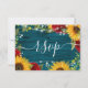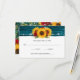 Sunflower Red Rose Rustic Wood Teal Wedding RSVP Card