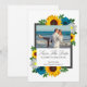 Design features elegant sunflowers, roses, and daisies with a golden yellow, teal and white colour palette. Design also features a charcoal grey frame. You can change the background colour on the front and back to the colour of your choice or leave both set to white. Photo template via Pixabay licensed under CC0 and must be replaced with your own photo