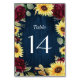 Sunflower Roses Burgundy Red and Navy Blue Wedding Table Number