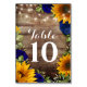 Sunflower & Roses Rustic Wedding Table Numbers