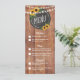 CARTES DE MENU MARIAGE CLAIR DE CHAÎNE DE SOUFFLE RUSTIQUE | Chaleureux arrière - plan de texture de bois de campagne, un design rond de tableau rustique avec tournesol, flammes à cordes scintillantes et moderne mariage option de nourriture modèle.