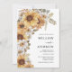 Sunflower Rustic Wedding Invitations. Add a dash of sunshine to your wedding with these beautiful hand-painted watercolor yellow sunflowers, white daisies, and sage green and terracotta-coloured leaves. Perfect for a romantic rustic autumn or outdoor summer garden wedding, these stunning boho chic wedding invitations will set the tone for your special day. Find coordinating products in the Rustic Watercolor Sunflower Wedding Invitations.