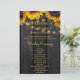 Elegant rustic budget wedding ceremony program template featuring beautiful bright yellow orange sunflowers bouquets and strings of twinkle lights on a country style dark brown wooden background. +++++++++++ + Personalize it with your your details.+++++++++++ Suitable for rustic country vintage chic summer garden | autumn fall outdoor weddings.