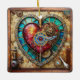Sunflower Stained Glass Heart Steampunk Series Ceramic Ornament