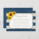 Summer wedding wishing well card with sunflowers and navy blue stripes. Great for rustic country barn weddings or other vintage style events.