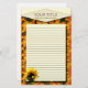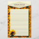 Bright yellow sunflower against an orange background pattern of sunflowers. Lined customizable stationery with area at top for title and subtitle -- or choose your own text to enter.