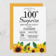 Sunflower Surprise 100th Birthday Invitation. Floral Flowers and White Background. Country Vintage Retro. Women Birthday. 12th 13th 15th 16th 18th 20th 21st 30th 40th 50th 60th 70th 80th 90th 100th, any ages. Printable Digital. For further customization, please click the "Customize it" button and use our design tool to modify this template.
