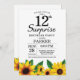 Sunflower Surprise 12th Birthday Invitation. Floral Flowers and White Background. Country Vintage Retro. Kids Girl Birthday. 12th 13th 15th 16th 18th 20th 21st 30th 40th 50th 60th 70th 80th 90th 100th, any ages. Printable Digital. For further customization, please click the "Customize it" button and use our design tool to modify this template.