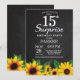 Sunflower Surprise 15e anniversaire Invitation. Fleurs florales et Arrière - plan de tableau noir. Country Vintage Retro. Enfants Fille anniversaire. 12ème 13ème 15ème 16ème 18ème 20ème 21ème 30ème 40ème 50ème 60ème 70ème 80ème 90ème 100ème, tout âge. Numérique imprimable. Pour plus de personnalisation, cliquez sur le bouton "Customiser" et utilisez notre outil de conception pour modifier ce modèle.