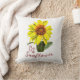Express yourself and show your joy of being surrounded by sunflowers. The amber colour petals and red-orange centres bring a warmth to the design. You can change or remove the text and change the background colour to personalize this pillow.