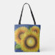 Bright sunflowers decorate this tote bag. Use this stylish tote bag for work, school, shopping, the beach, travel, etc...
