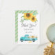 Vous aimerez ce tournesol jaune avec un camion vintage turquoise. Sur le dos de la carte se trouvent des couleurs jaunes et turquoise. Idéal pour vos salles mariages !