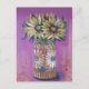 Watercolor and acryl painting, representing a vintage painted vase full of fresh sunflowers.