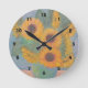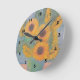 This wall clock features sunflowers in a vase, a painting by Brendan Loughlin, an artists from Guilford, Connecticut.