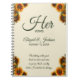 Introducing our exquisite sunflower themed wedding vow notebook for her, a perfect choice for couples seeking a rustic, country touch. This enchanting notebook captures the beauty of sunflowers accentuated with charming forest green accents. The vibrant sunflowers symbolize joy, happiness and blossoming love, setting the perfect tone for your special day, The lush forest green colour adds a touch of rustic charm, reminiscent of lush meadows and the tranquillity of the countryside. Front cover features “Her Vows” which can be customized with a name in place of “her” and the couple’s names and wedding date. On the back is a wedding/marriage quote fit for the occasion. This can be replaced with your favourite romantic quote. This product is featured in our Sunflower Wedding Forest Green and Gold Rustic Collection and pairs beautifully with the rest of the ensemble.