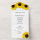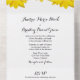 Yellow sunflower tearaway all in one wedding invitation and RSVP. Simple wedding invitation tearaway RSVP card design that features a beautiful yellow sunflower over a white background. Yellow, black and white, this simple invitation is great for a rustic or fall / autumn wedding.