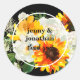 Sunflower & White Rose Thank You- Black Classic Round Sticker