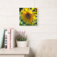 Sunflower with Bees square wall clock. Floral wall clock has a pretty yellow sunflower with bees.