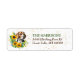 The left side of these return address labels feature a beautiful image of a tri coloured Beagle Dog portrait within a bright sunflower and green leaf wreath. Subtle gold confetti adds interest to the background. Your custom text is in green and dark brown at the right. Colourful!