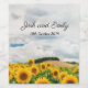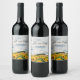 Sunflower Yellow Rustic Wedding Wine Label- feature a rustic landscape with sunflower field. Yellow rural hills and cloudy sky.