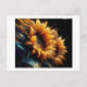 Vibrant sunflowers display swirling, dynamic strokes of orange and yellow, contrasting with deep blue and black hues. The composition conveys a sense of movement and energy, with a signature in the upper corner.