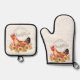 Sunflowers and chicken farm fresh oven mitt & pot holder set