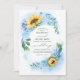 Sunflowers and Dusty Blue Hydrangea Floral Wedding Invitation