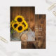 Practice some wedding kindness when you arrange a donation card at your guests' place setting at your marriage reception. The casual yet classy Sunflowers and Garden Watering Can Wedding Charity Favour Card states that in lieu of a traditional party favour, a donation has been made in their name to charity. Customize it by adding in the name of your favourite charity and the personal names of the bride and groom. This country chic custom rustic ranch style nuptial favour card features a digitally enhanced floral photograph of a silver metal watering can filled with yellow sunflower blossoms, white bridal veil, natural wood slice with the word LOVE burned on it and a vintage lace trimmed linen handkerchief with a burlap and weathered brown barn wood background.