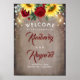 Sunflowers, burgundy roses, greenery rustic country fall wedding welcome sign posters