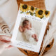 Rustic birth announcement card with a vertical photo of your newborn featuring watercolor illustration of yellow sunflowers with baby's breath.