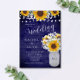 Sunflowers Babys Breath Navy Jar Lights Wedding Invitation