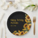 Sunflowers Black Rustic Elegant Happy Birthday Paper Plate