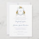 Sunflowers Blue Hydrangea Crest Monogram Wedding Invitation. Watercolor Dusty Blue Wedding Crest. Elegant White Floral Hydrangea Greenery Wedding Invitation. Traditional Wording Wedding Invitation