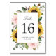 Sunflowers Blush Pink Floral Romantic Table Number. Elegant Sunflowers Blush Greenery Wedding Table Numbers