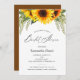 Beautiful autumn sunflower bridal shower invitation features a graphic of sunflowers and greenery across the top. Personalize with your bridal shower event details.