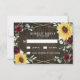 Sunflowers Burgundy Roses Rustic Geometric Wedding RSVP Card