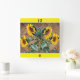 Sunflowers Butterflies Rustic Barn Board Square Wa Square Wall Clock