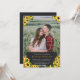 Sunflower photo wedding invitation to which you can add a photo that covers the whole invitation. Clusters of yellow sunflowers decorate the floral wedding invitation. Add your names and the details of your wedding on a charcoal label at the bottom of the photo wedding invite.