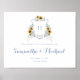 Sunflowers Dusty Blue Hydrangea Crest Monogramme Affiche de bienvenue. Affiche de bienvenue Mariage bleu Dusty. Blanc Hydrangea Fleurs verdure Aquarelle Mariage Poster