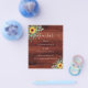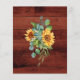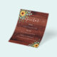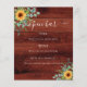 Rustic brown wood as background. Decorated with watercolored sunflowers and eucalyptus greenery. With the text: Open bar. Personalize and add your bar menu.