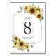 Sunflowers Greenery Gold Geometric Wedding Table Number. Elegant Greenery Sunflowers Wedding Table Numbers