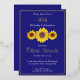 Sunflowers against a deep blue background . Invitation to a 40th birthday celebration. This trendy deep blue, as well as the real foil name and frame, creates a pleasing contrast with the yellow sunflowers... A bright and cheery invitation for the summer season. Make it unique by including the specifics of your gathering.