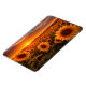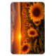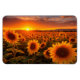 This magnet is shown with a photo print of a field of sunflowers at sunset.