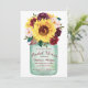 These bridal shower invitations feature a watercolor floral bouquet in a mason jar with sunflowers, and blush burgundy roses. Personalize these invitations with your own text.