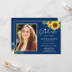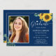 Sunflowers Navy Blue Photo Graduation Celebration Invitation