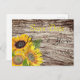 Sunflowers on a background of tree bark postcard