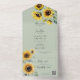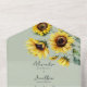 Your wedding day is a celebration of love, joy, and the beauty of nature's golden treasures. This All-in-One wedding invitation showcases the radiant charm of sunflowers on a soft sage green background, creating an invitation that embodies warmth, happiness, and elegance. The All-in-One wedding invitations are both beautiful and practical by combining the wedding invitation with an easy to remove perforated RSVP postcard. They are also quick and easy to prepare for mailing. Simply address the invitation, fold the back flap and seal with the included clear stickers. Once your guests receive the pre-addressed invitation they simply tear off the perforated RSVP card and drop it in the mail. The addition of the QR code allows your guests to easily access your wedding website for information including reception details and dinner choices!