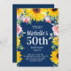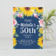 Sunflowers Pink Roses Navy Blue 50th Birthday Invitation